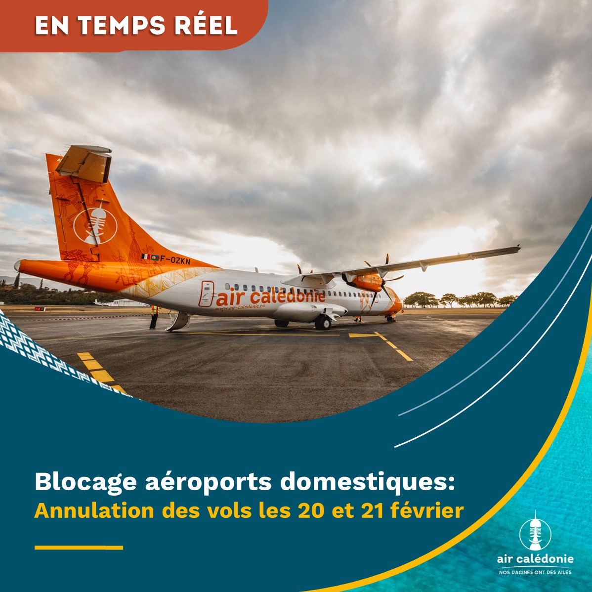 Air Calédonie est contrainte d’annuler tous ses vols commerciaux domestiques pour le weekend: l’ensemble des vols à destination et en provenance des Îles Loyauté et de l’Île des Pins sont annulés les samedi 21 et dimanche 22 mars 2026.