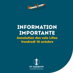 Lifou – Wanaham Airport will be closed this Friday, October 10, as part of the mobilization announced by the Ne Drehu Customary Coordination Committee. As a result, the airline is forced to cancel all its flights to this destination on Friday, October 10, 2025. Passengers affected by a cancellation will be automatically rebooked on the […]