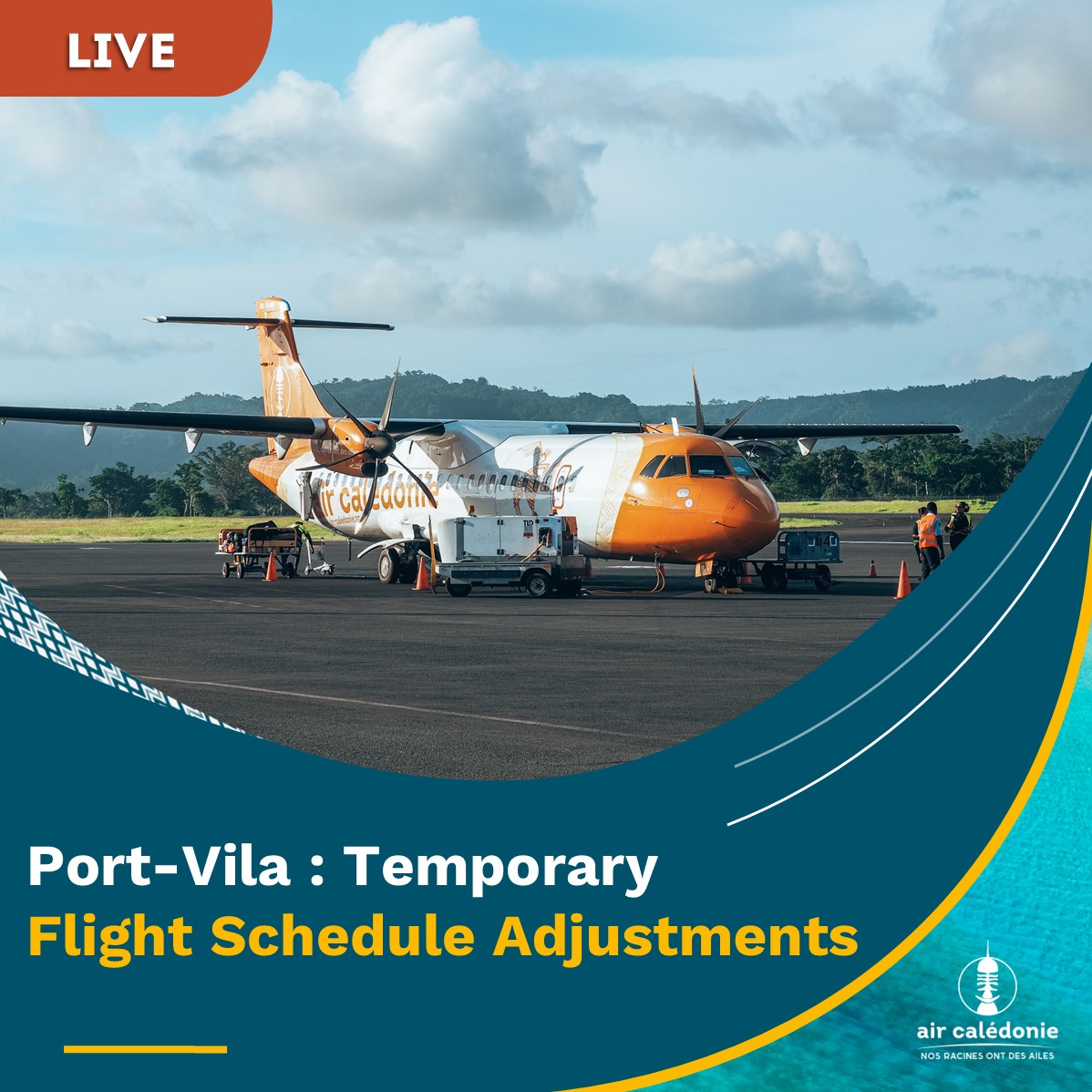Passengers with confirmed tickets on the cancelled Port-Vila to Nouméa flights on Mondays and Thursdays have been automatically rebooked on the new Wednesday or Friday flights. Impacted passengers have been informed individually by SMS or email, based on the contact details provided at the time of booking.