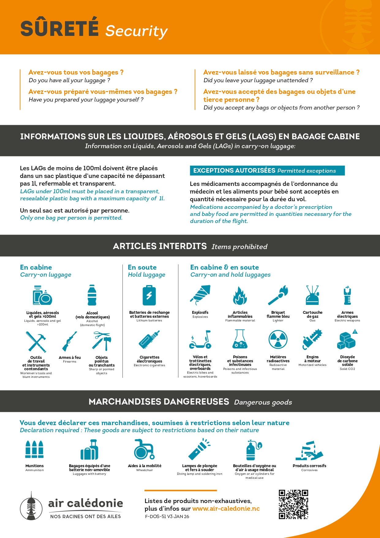In order to facilitate the preparation of luggage, the General Directorate of Civil Aviation (DGAC) has developed the AIRBAG application which you can also refer to.