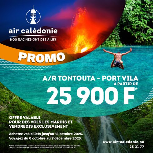 Prenez un bol d’air frais avec notre offre promo du moment ! Du 25 juin au 6 juillet 2025, profitez de tarifs promotionnels pour voyager jusqu’au 30 septembre 2025 : ✈ A/R Ile des Pins à partir 11 000F ✈ A/R Loyauté à partir 14 000F C’est l’occasion idéale pour planifier votre prochain voyage ! […]